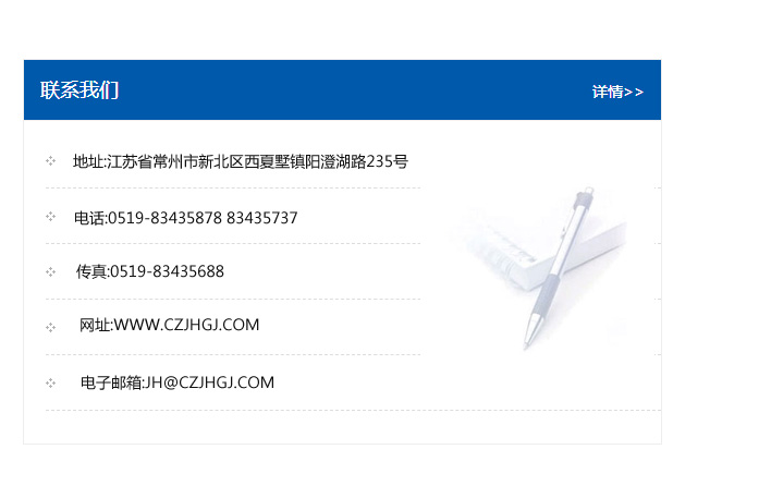 地址:常州市新北區友邦商務大廈1幢16、17層  電話:0519-85101652  傳真:0519-85112595  郵編:213022  網址:www.cz-jiayue_cn.lvshiah.com  郵箱:xiajifengaa@163.com